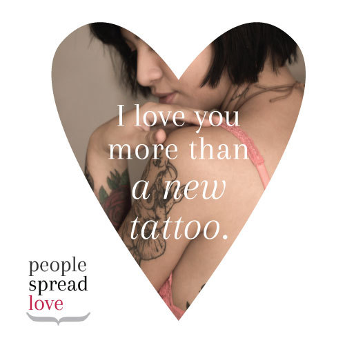 Categories Uncategorized Post author By People Spread Love Post date February 22, 2016 “I love you more than a new tattoo.” Tags love, People spread love, tattoo ← → Meet & Make at Jackson Whole Grocer